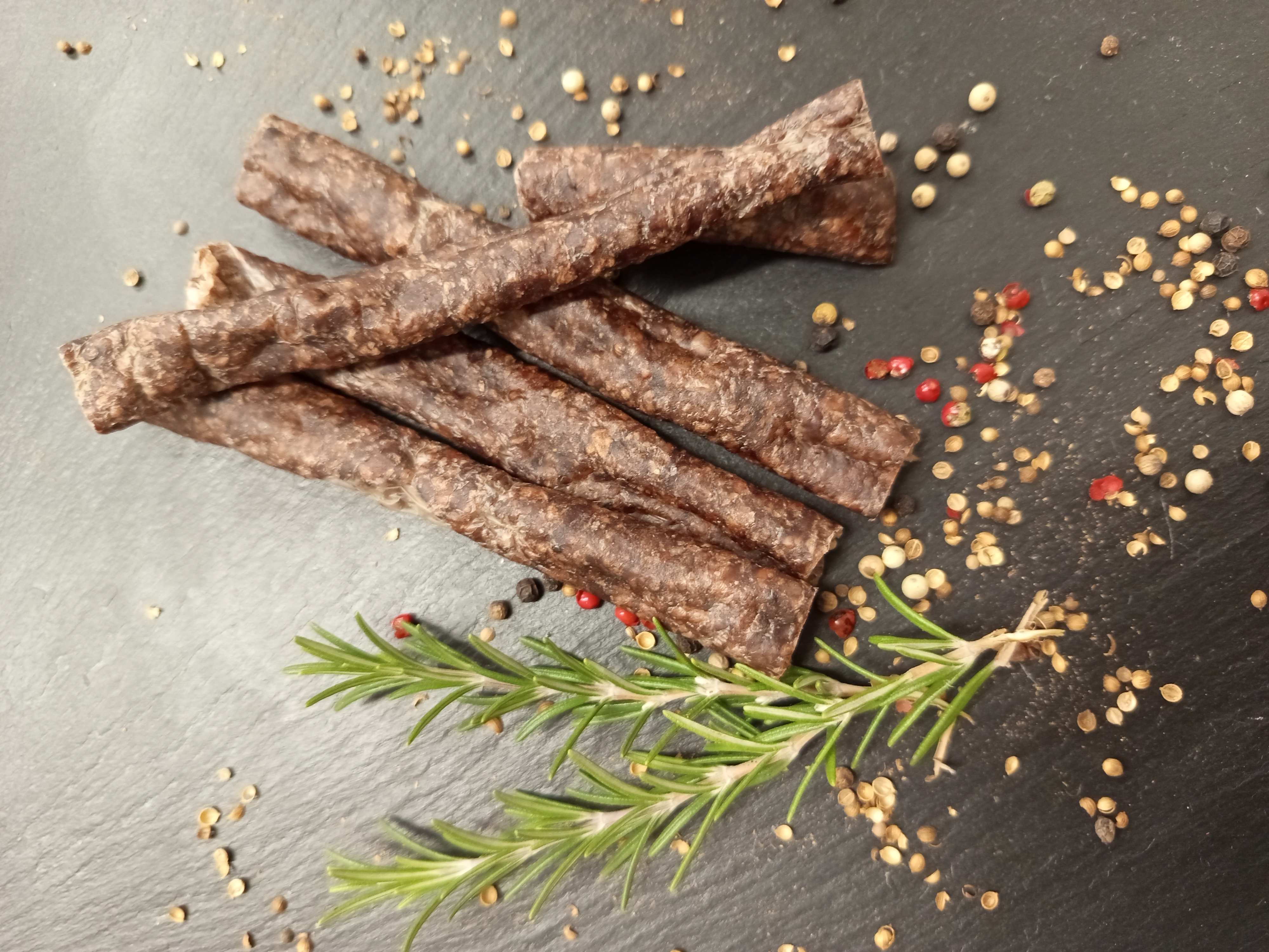 - vakuově balené, balení 100g Sušené klobásky - Droëwors je druh klobásek, jejiž receptura pochází z Jižní Afriky. Hodí se buď jako pochoutka k pivu či vínu, ale i jako skvělý zdroj energie a bílkovin vhodný na cesty či pro sportovce. na 100 g bylo použito 200 g masa